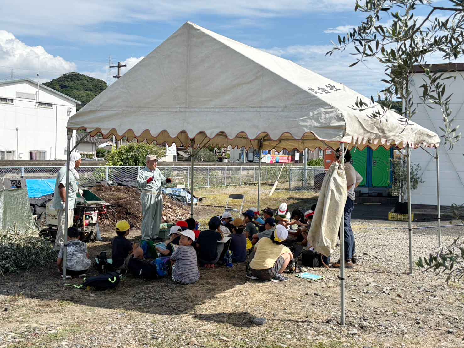 2025年9月30日、佐世保市相浦西小学校三年生の児童さんと先生方合わせて、82名が、当社、オリーブ農園を訪問してくださいました。